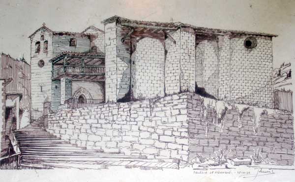 En esta ilustración, realizada en 1978, se muestra la iglesia, sí, pero también sale en primer plano el muro del cementerio al que se dedica este número.
